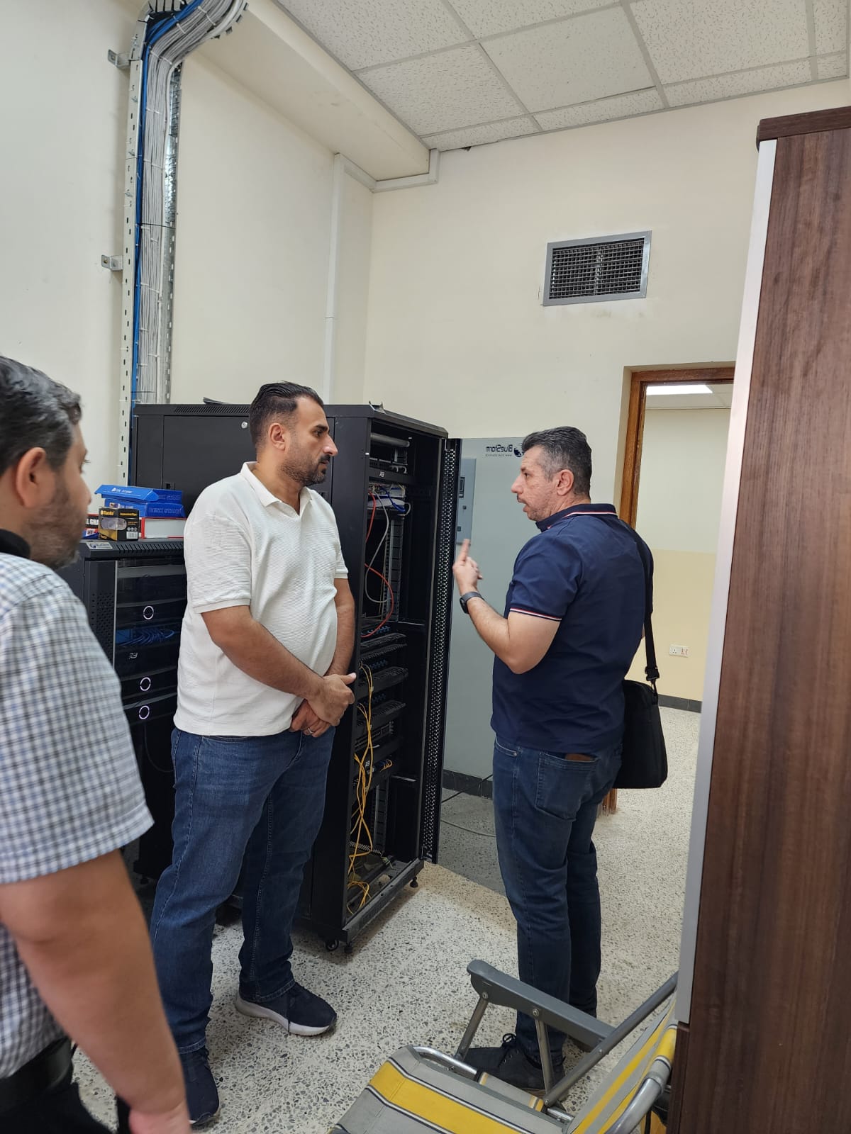قاد الجولة السيد مدير مركز الحاسبة الإلكترونية م.د. محمد جعفر علي، وبمشاركة مسؤول شعبة صيانة الحاسبات والشبكات م.م. عمار صباح طالب، ومسؤول وحدة مركز البيانات ر.مهندسين ماهر ماجد حميد.