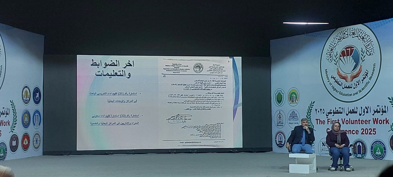 في الورشة التي أقامها قسم ضمان الجودة بجامعة بغداد بعنوان “توضيح آلية العمل باستمارات تقييم الأداء للعام الدراسي 2024–2025″، وذلك يوم الخميس الموافق 23/10/2025 في قاعة الحكيم عند الساعة العاشرة صباحاً.