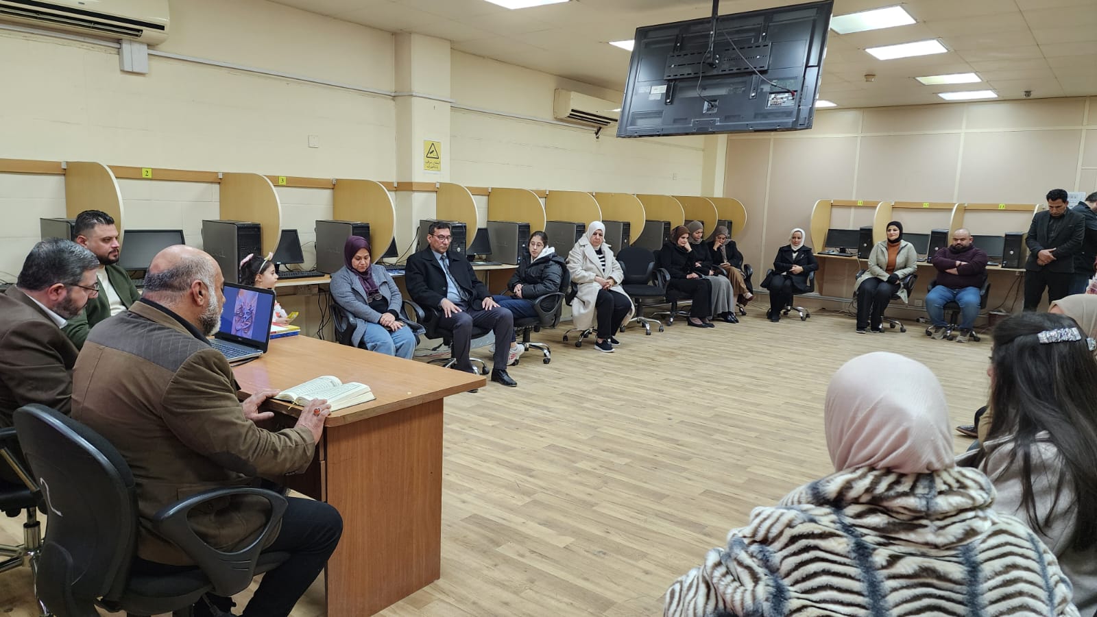 استنادًا إلى توجيه مكتب رئيس مجلس الوزراء، وبإشراف مباشر من السيد مدير مركز الحاسبة الإلكترونية في جامعة بغداد، أقام المركز احتفالية بمناسبة اليوم الوطني للقرآن الكريم، وذلك في تمام الساعة التاسعة صباحًا من يوم الأربعاء الموافق ٢١/١/٢٠٢٦، في قاعة المختبر رقم (٣).